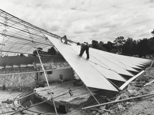 Wolfgang Sievers, Affixing pre-cast aluminium panels to the roof of the Sidney Myer Music Bowl, 1958, State Library Victoria